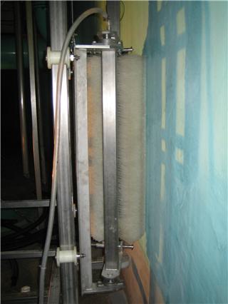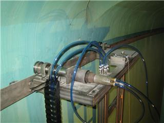 Die Inspektionsleiter kann auch als Halte- und Verfahrvorrichtung für Wandfräsen, Strahleinrichtungen und Beschichtungsgeräte dienen. Später ist die Inspektionsleiter das Grundgestell für das eigentliche Bürstenmodul, das zum Reinigen in den Behälter eingebracht werden kann.