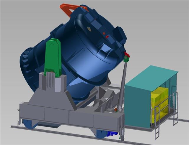 Der Abstich- und Abschlackwagen wurde für einen österreichischen Betreiber konzipiert und gebaut. Der Wagen nimmt eine Stahlgießpfanne auf und fährt zum Abstich unter einen EAF. Nach dem Abstich wird die Pfanne nach kurzem Verfahrweg in die dem EAF abgewandte Seite zum Abschlacken gekippt.